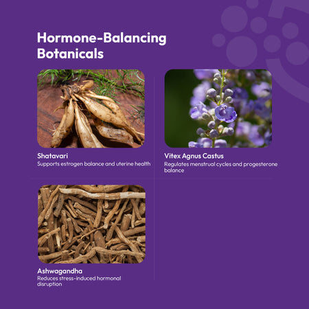 Shatavari: A traditional Ayurvedic herb that supports hormonal balance by acting as a phytoestrogen to help regulate estrogen levels, alleviate menstrual irregularities, and ease symptoms like cramps and mood swings in conditions such as PCOS or menopause.