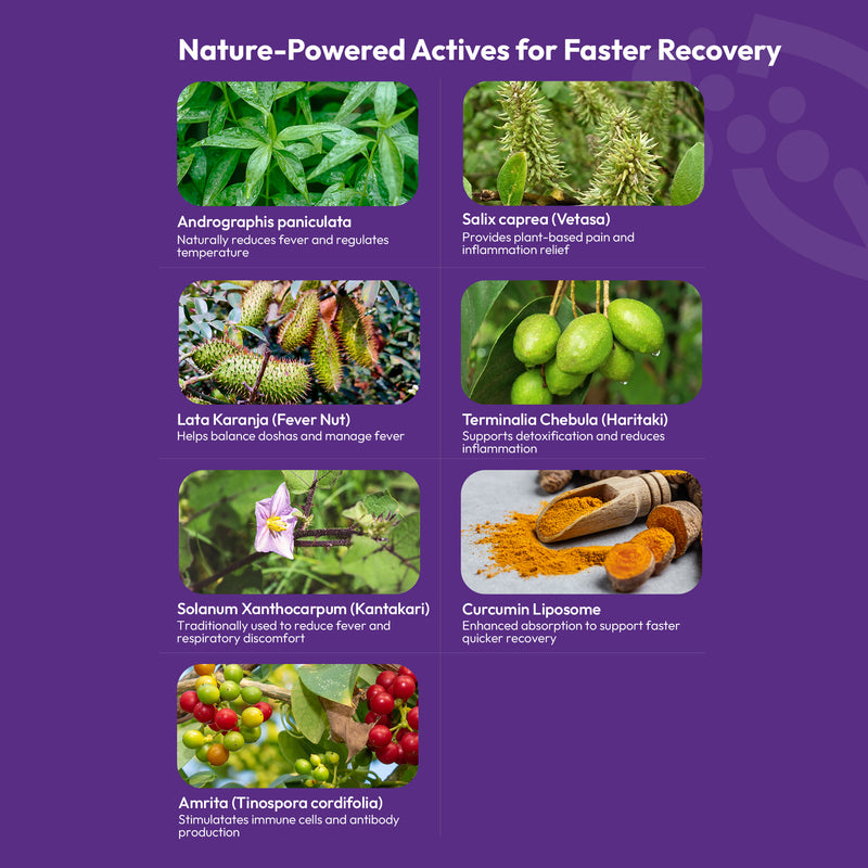Latakaranja Beej: A classical Ayurvedic herb, also called Fever Nut, helps balance the three doshas (Vata, Pitta, and Kapha) to naturally support fever management.